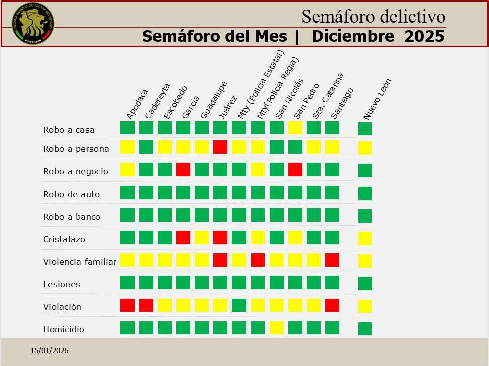 Cadereyta Jiménez, N.L.- La Secretaría de Seguridad del Estado reconoció el trabajo de la Policía Municipal de Cadereyta, derivado de los resultados obtenidos en materia de seguridad pública, los cuales fueron representado a través del Semáforo del Delito del mes de Diciembre de 2025.